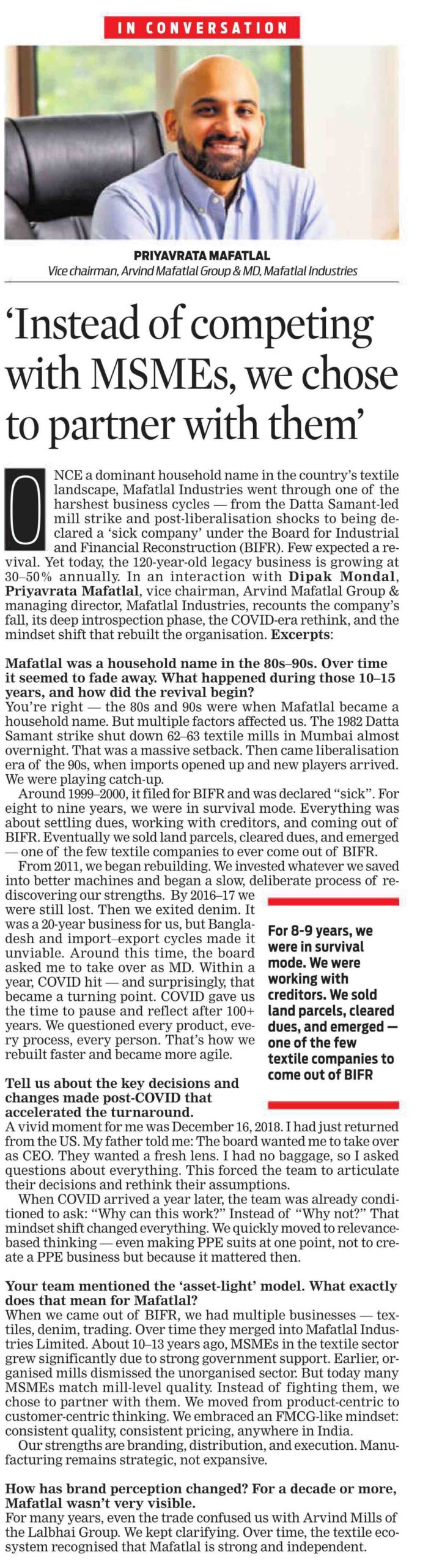 Uniform focus helps 120-year-old Mafatlal Industries sew up revival
